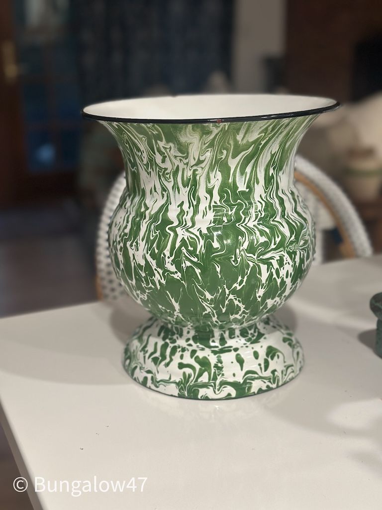 I also bought this green and white enamel one while out antiquing. This one is big, and it is too fabulous. I’m ready to build a room around this piece, as it’s waiting for something good.